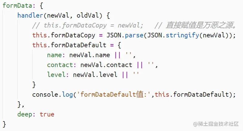 formData本来是父组件传过来的,但是我不想直接用,于是我直接赋值给一个formDataCopy的对象。