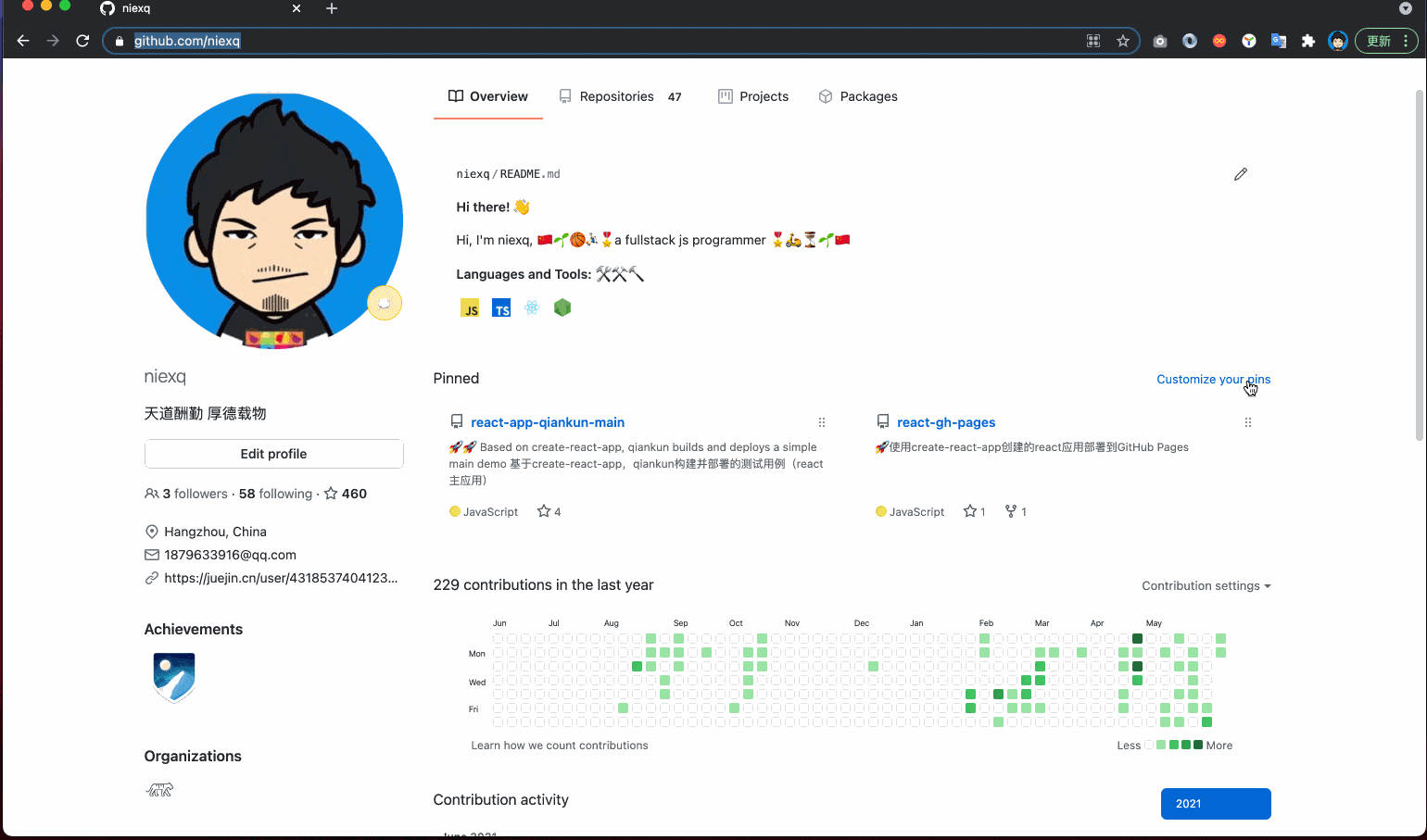 接着然后,你就可以稍加配置下自己的github门面了