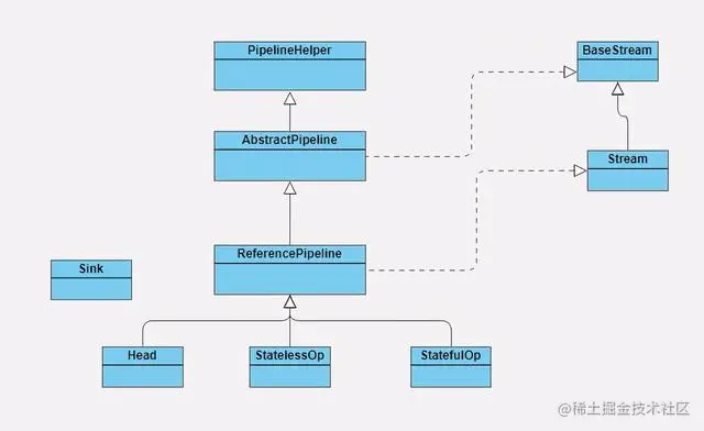 管道结构通常是由ReferencePipeline类实现的,前面讲解Stream包结构时,我提到过ReferencePipeline包含了Head、StatelessOp、StatefulOp三种内部类。