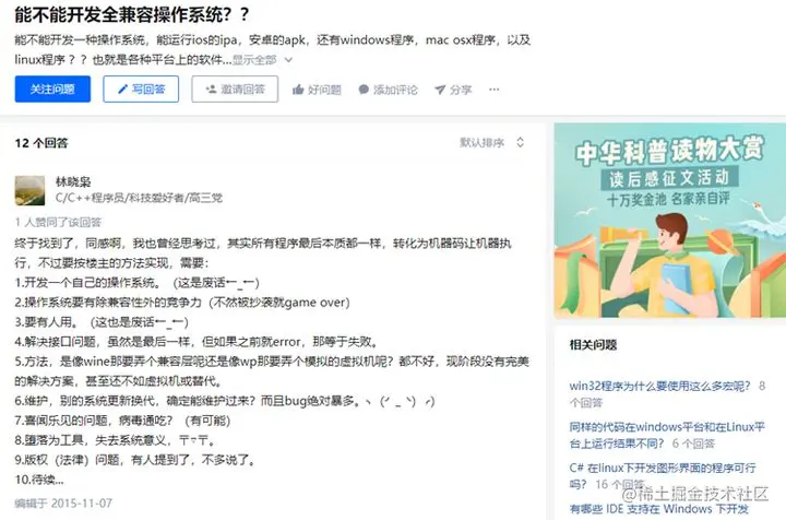 其实在某社交平台,曾经就有人发表过提问“能不能开发一种操作系统,能运行ios的ipa,安卓的apk,还有windows程序,mac osx程序,以及linux程序 ?”而根据下方的回答可得知一个答案,可行但是问题比较多,由此可见,一个新系统兼容安卓的APK完全可行,只不过是难度的问题,而如何实现并不是我们所要担心的问题,那是程序员们所要考虑的问题。
