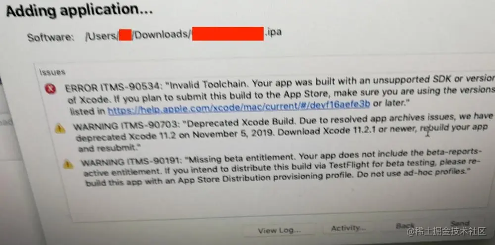 我XCode(11.2)打包后再使用Application Loader上传,报如下错误: