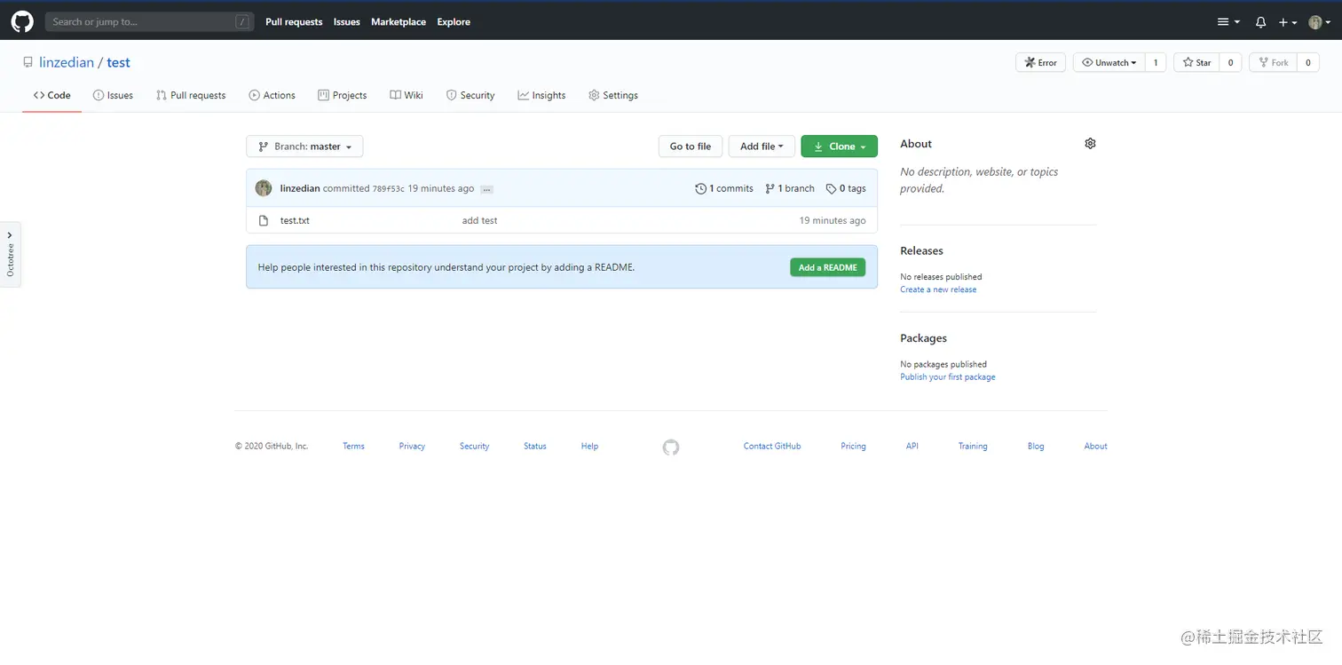 是不是成功了,有的会出现一个让你确认是否连接的对话框,你只要输入yes就OK了,我们再来看一下我们Github里面是否有这个文件: