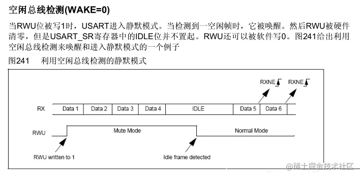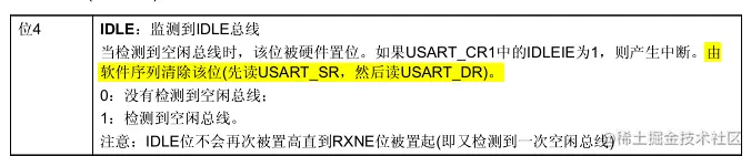 关于串口空闲检测可以在STM32参考手册上找到相关介绍