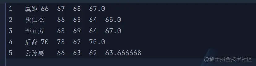 有五个学生,每个学生有 3 门课程成绩,从键盘上输入数据(学号、姓名、三门课程成绩),计算出平均成绩,并把原有数据和计算出的平均分数存放于磁盘中。