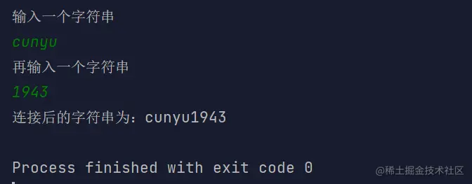 System.out.println("连接后的字符串为:" + str1 + str2);