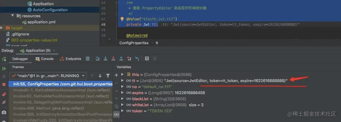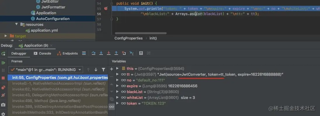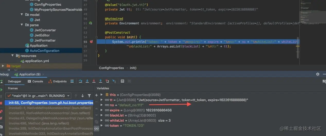 虽然我们的配置参数 auth.jwt.blackList是数组,但是就没法映射到上面的blackList (即使换成 List<String> 也是不行的,并不是因为声明为String[]的原因)