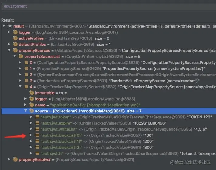 * yml数组,无法转换过来,只能根据 "auth.jwt.blackList[0]", "auth.jwt.blackList[1]" 来取对应的值