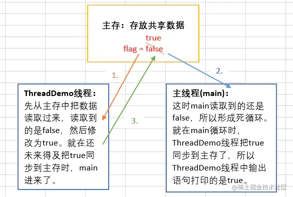 System.out.println("主线程读取到的flag = " + threadDemo.isFlag());