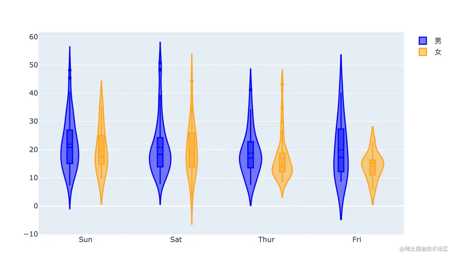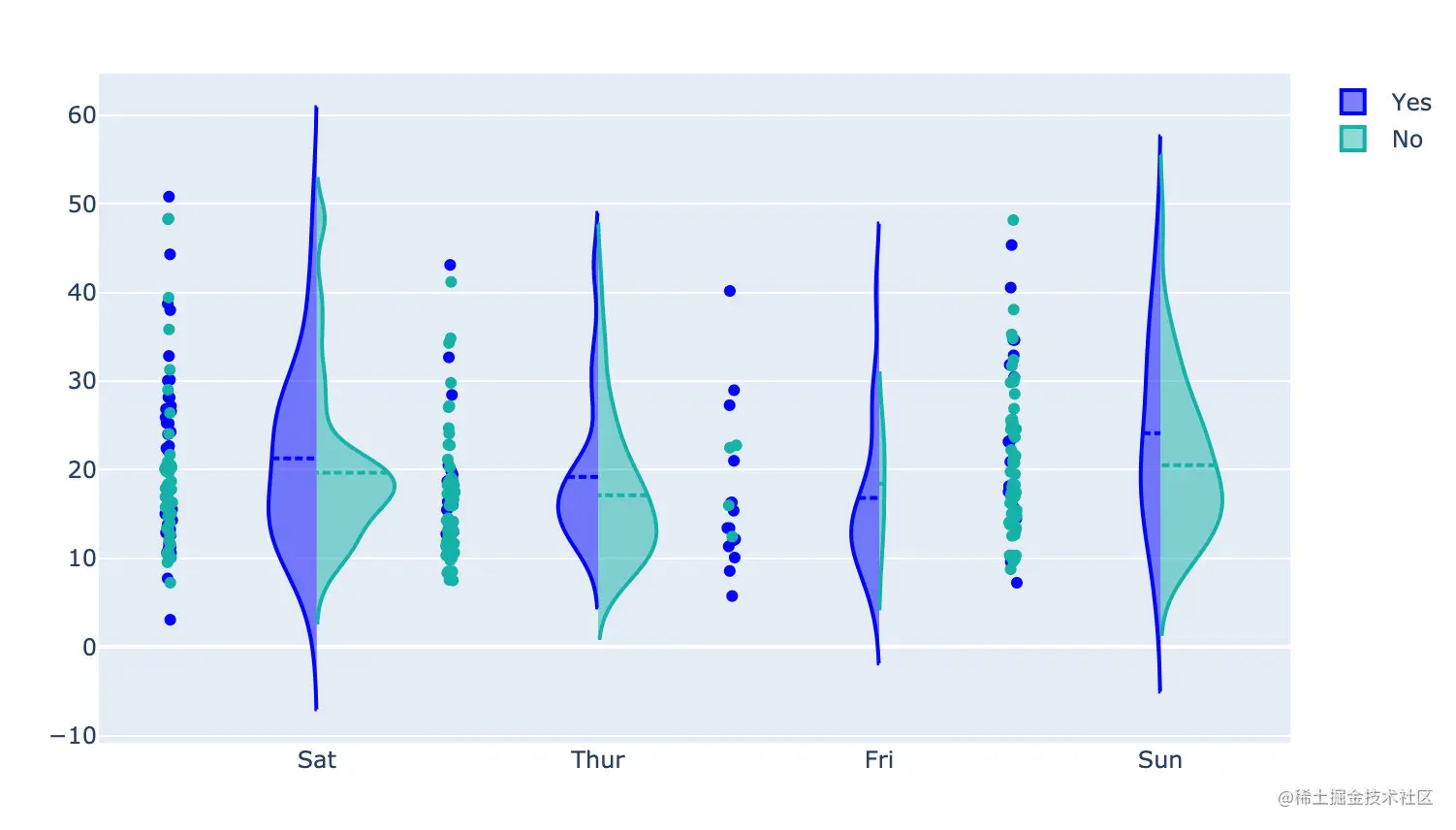 fig.update_layout(violingap=0, violinmode='overlay') # 设置间隔和模式