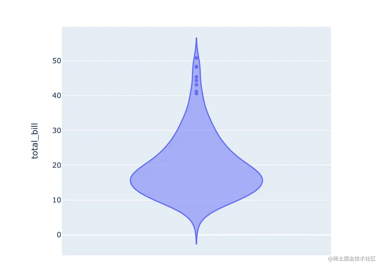 fig = px.violin(tips,y="total_bill") # 使用total_bill数据