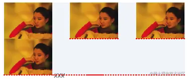 间隙产生的三大元凶就是“幽灵空白节点”、 line-height 和 vertical-align 属性。为了直观演示原理,我们可以在图片前面辅助一个字符 x 代替“幽灵空白节点”,并想办法通过背景色显示其行高范围,于是,大家就会看到如图所示的现象: