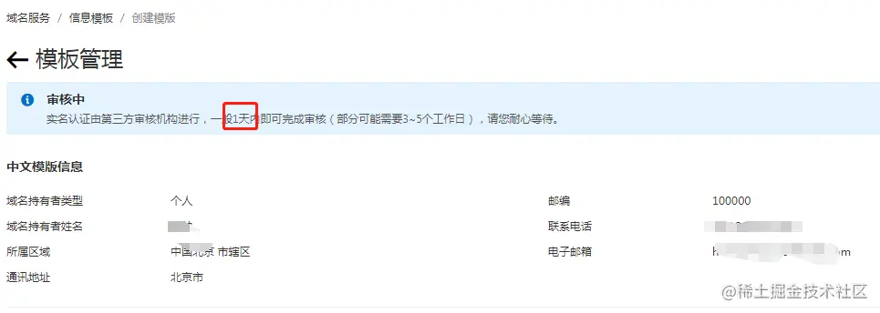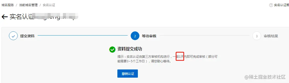 域名实名认证一般也是 1 天。