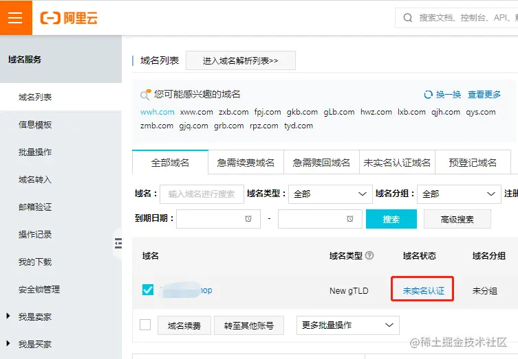 注意,域名购买成功之后,必须要进行“实名认证操作”,否则域名不可用。