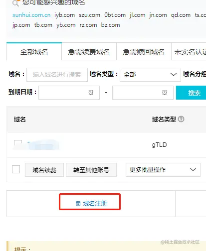 点击“域名注册”。