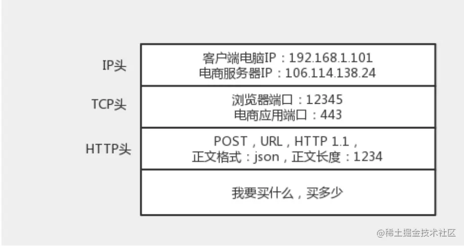 知道了目标地址,浏览器就开始打包它的请求。对于普通的浏览请求,往往会使用HTTP协议;但是对于 购物的请求,往往需要进行加密传输,因而会使用HTTPS协议。无论是什么协议,里面都会写明“你要 买什么和买多少”。