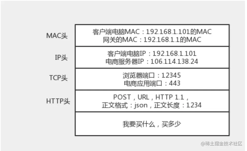 目标服务器发现 MAC 地址对上了,取下 MAC 头来,发送给操作系统的网络层。发现 IP 也对上了,就 取下 IP 头。IP 头里会写上一层封装的是 TCP 协议,然后将其交给传输层,即TCP 层。 在这一层里,对于收到的每个包,都会有一个回复的包说明收到了。这个回复的包绝非这次下单请求的 结果,例如购物是否成功,扣了多少钱等,而仅仅是 TCP 层的一个说明,即收到之后的回复。当然这个 回复,会沿着刚才来的方向走回去,报个平安。