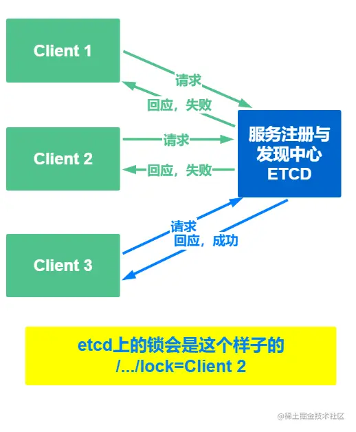 获得锁的顺序也是全局唯一的,若小A获得了锁,那么在 ETCD 里面,会有相应的key value 来标识 这一个客户端