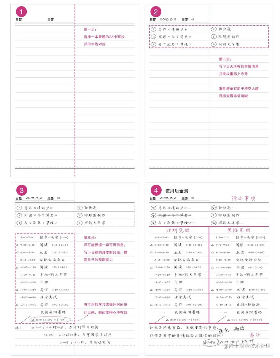每日计划的模板不用很复杂,能够简单记录每天要做的事情即可,比如书中给出的模板就挺好。