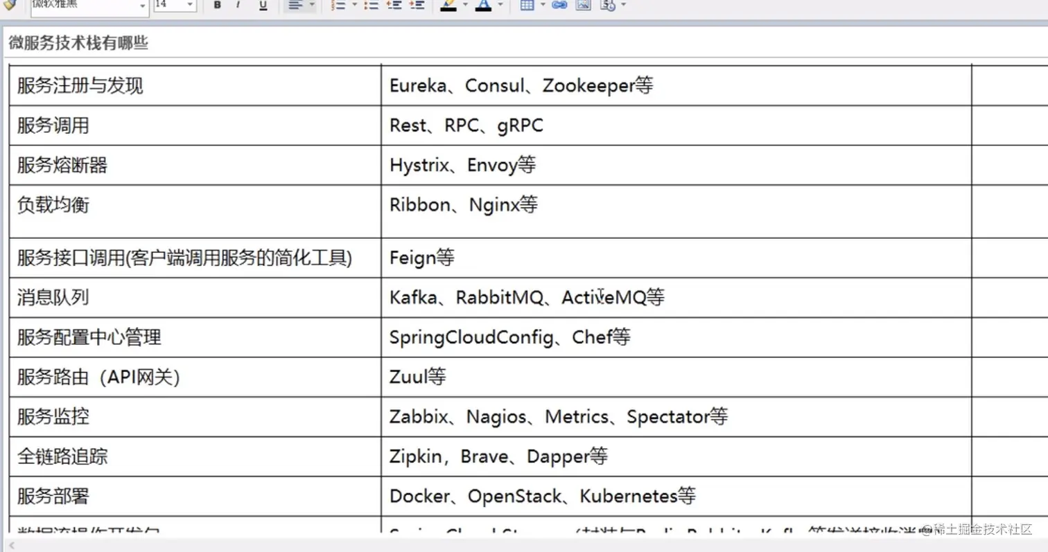 微服务的技术栈:
