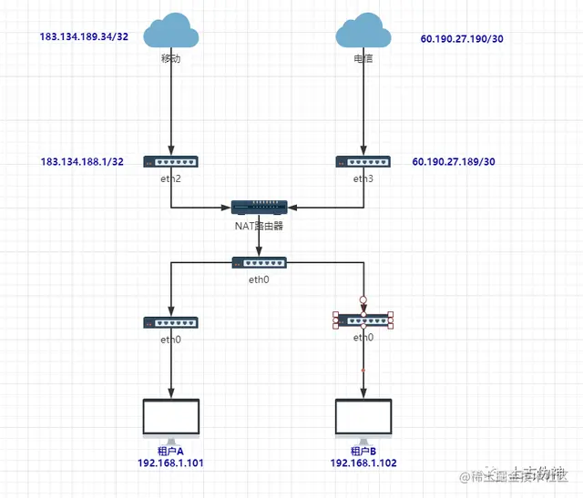 运营商里面也有一个IP地址,在运营商网络里面的网关,不同的运营商方法不一样,有的是/32的,也即是一对一连接。