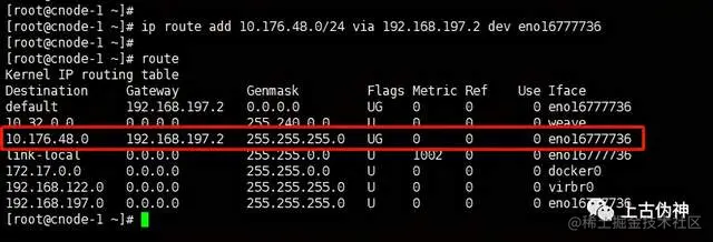 比如想去10.176.48.0/24这个目标网络,需要从eno16777736出去,经过192.168.197.2这个网关