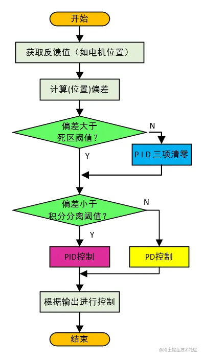带有闭环死区与积分分离的PID控制流程如下图:
