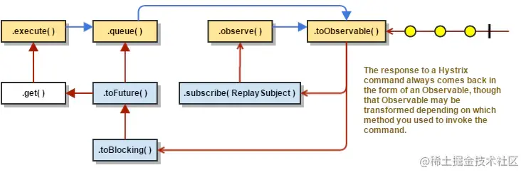 HystrixCommand内部均通过一个Observable的实现来执行请求,即使这些命令本来是用来执行同步返回回应这样的简单逻辑。
