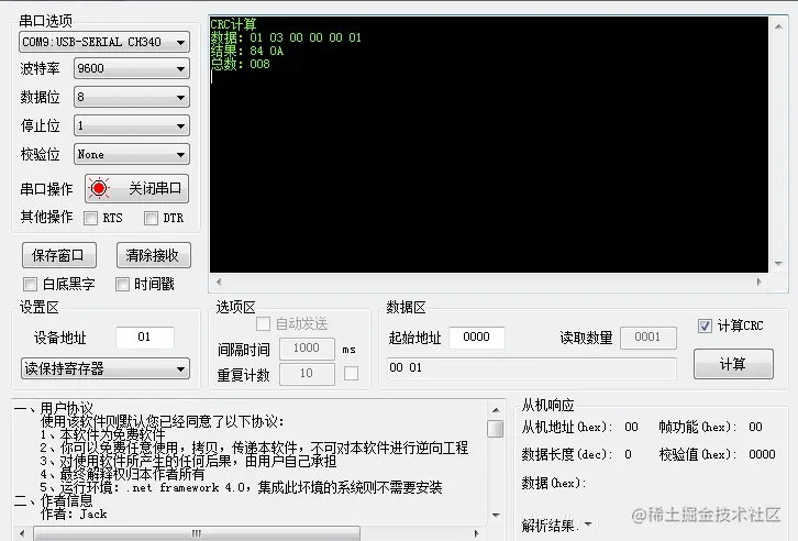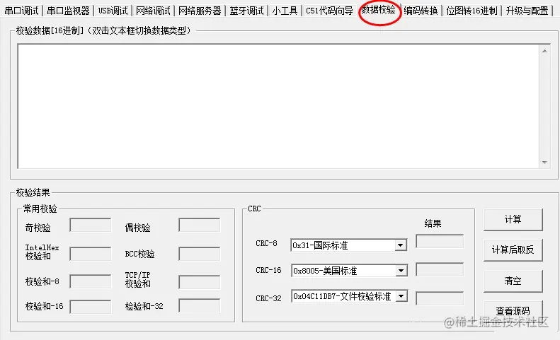 最近在调试Modbus通信时需要计算CRC校验,找了好久没有一个找到一个好用的数据校验计算软件,无意间在一个串口调试助手软件上看到了可以计算校验和,试了一下非常好用,现将这个软件分享出来。