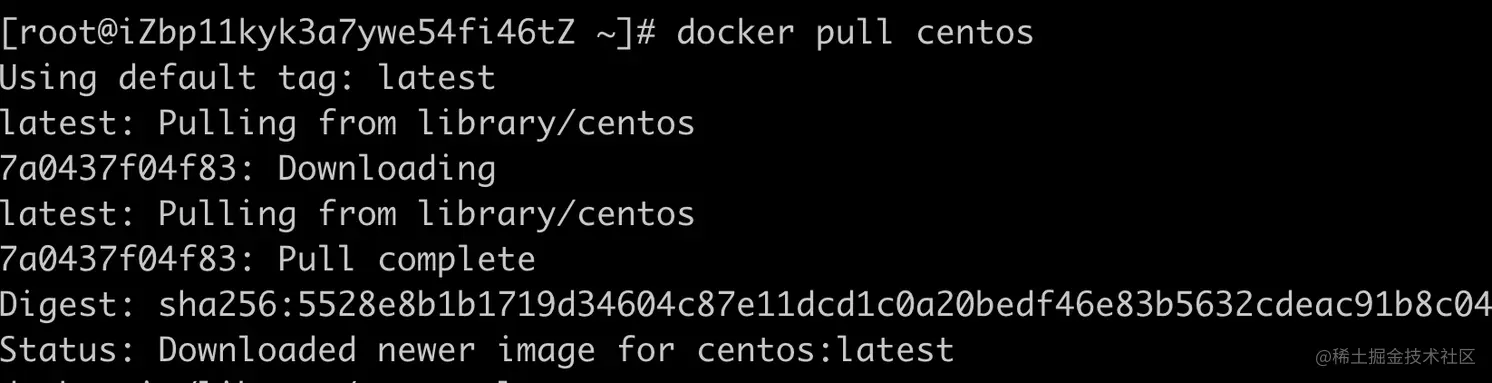 - 拉取镜像,这里会发现镜像也是一层一层拉取的;