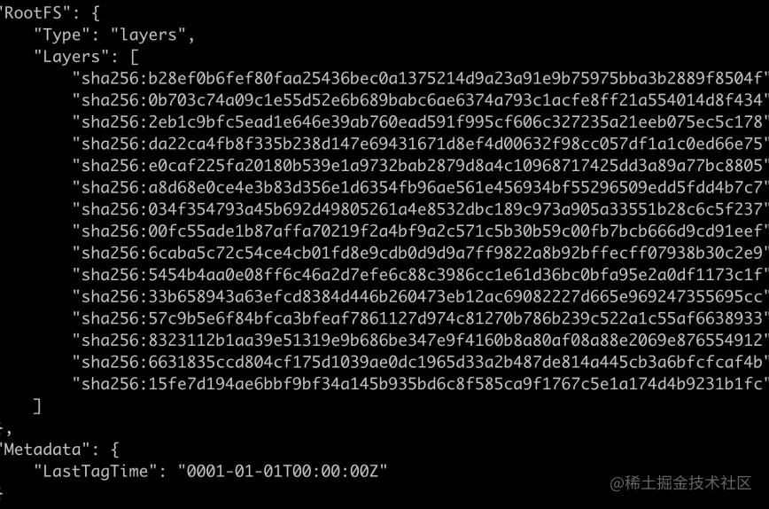 我们也可以使用docker image inspect elasticsearch查看elasticsearch的分层,如下图所示: