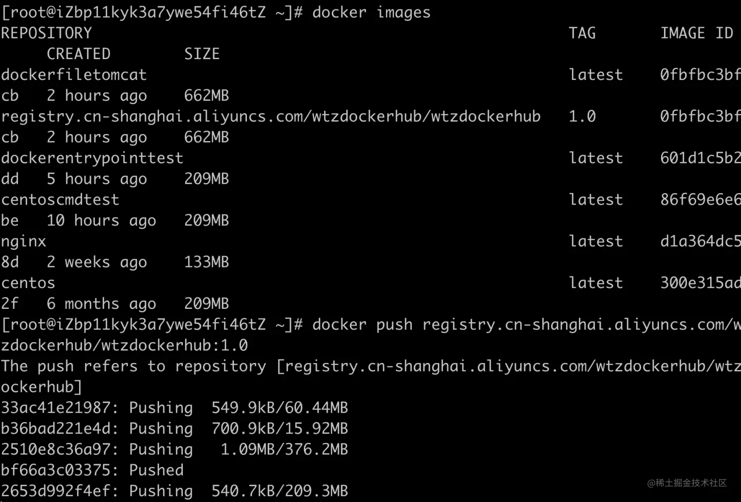 docker push registry.cn-shanghai.aliyuncs.com/wtzdockerhub/wtzdockerhub:[镜像版本号]