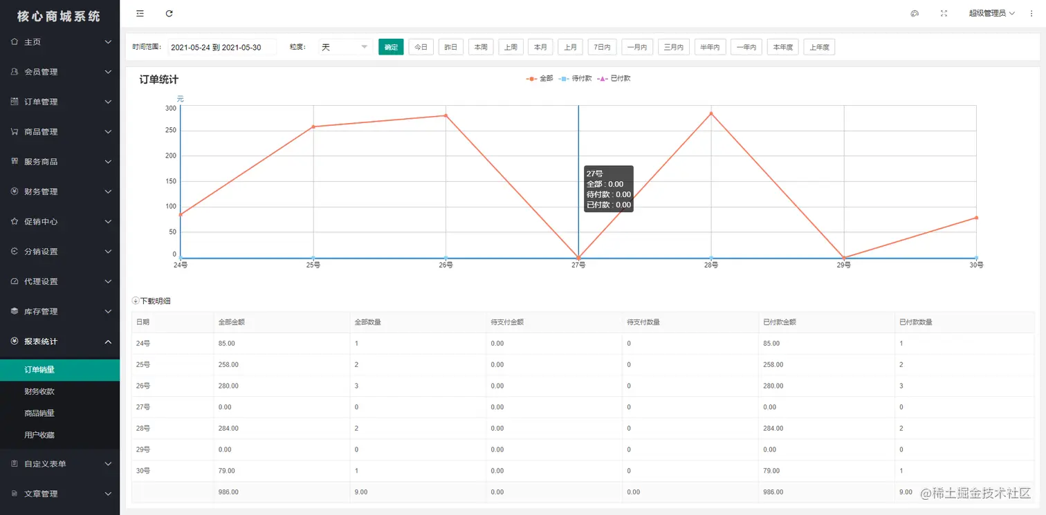 - 财务管理:支付方式设置,支付单、退款单、用户提现管理、用户账户资金流动情况、发票管理