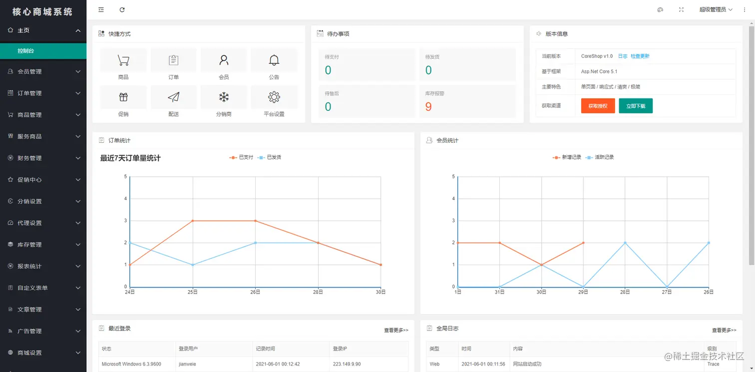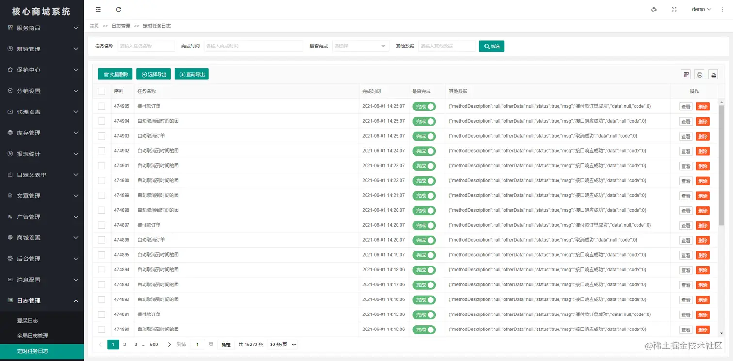 - 日志管理:后台操作日志、后台登录日志、全局日志管理、定时任务日志