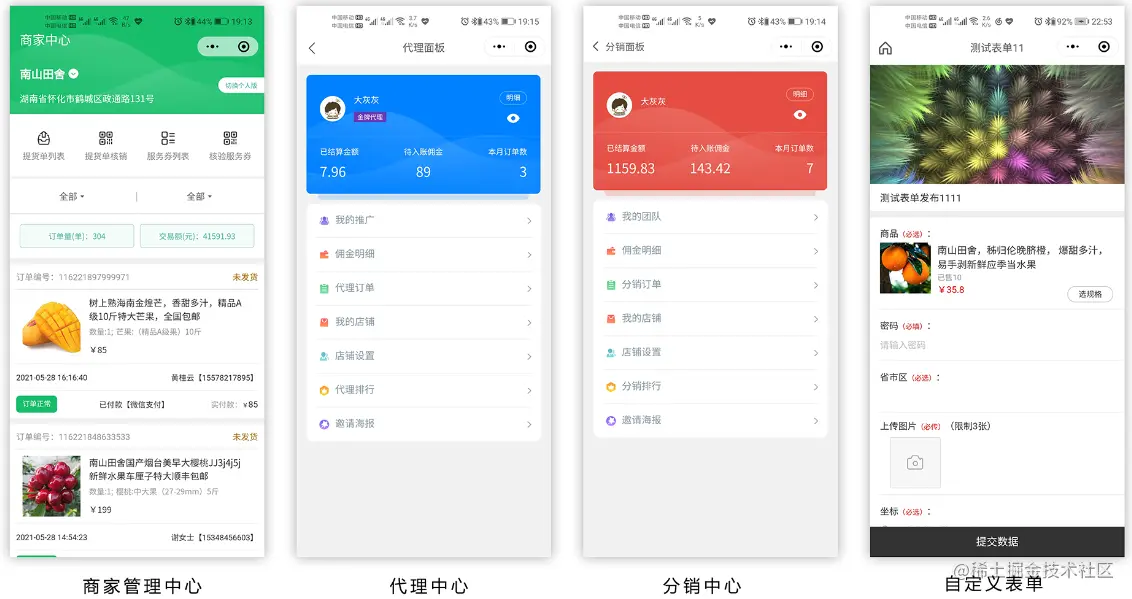 - 代理管理:代理设置、代理商品池管理、代理商等级、代理商列表、代理商订单