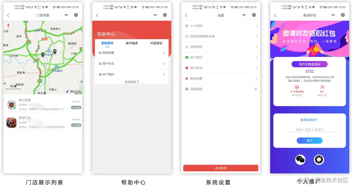 - 平台设置:防小程序审核失败开关、平台设置、分享设置、会员设置、商品库存报警、订单全局设置、积分设置、提现设置、邀请好友设置、阿里云OSS存储设置、腾讯云COS存储设置、腾讯地图设置、快递查询接口设置、快递100面单打印设置、百度统计代码设置