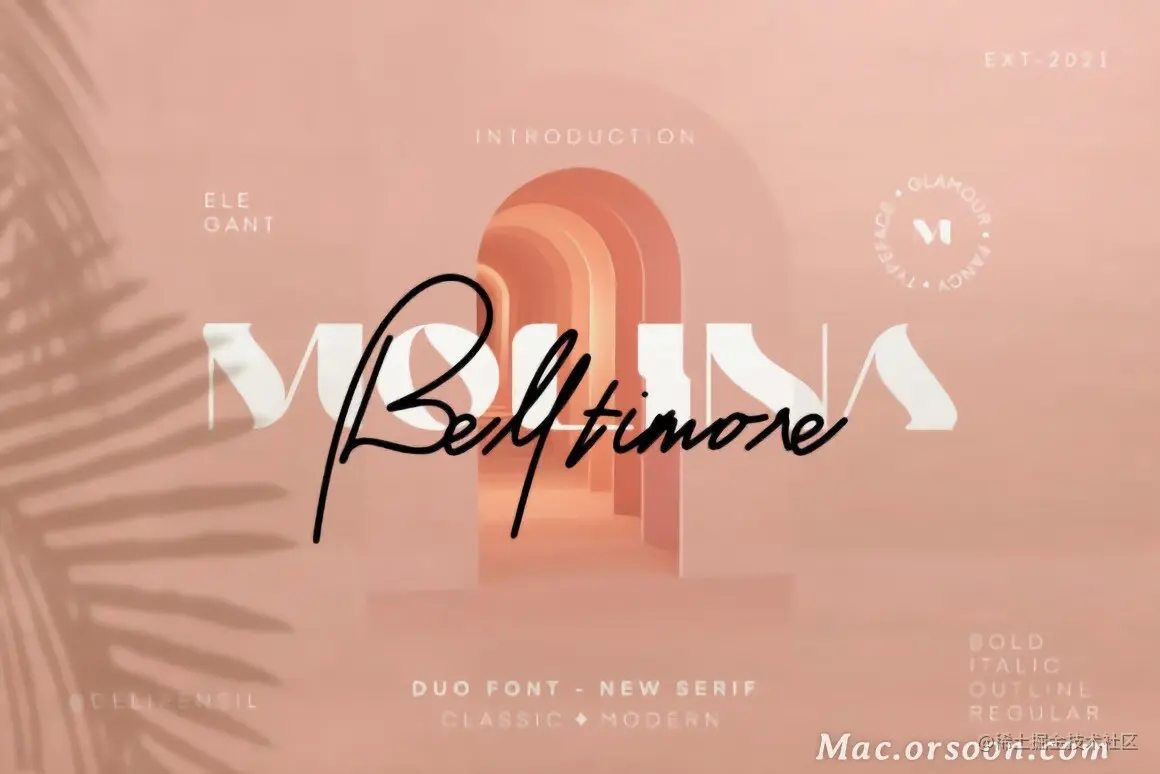 Molina 是一种酷而优雅且令人难以置信的独特双字体(衬线和脚本)。这款字体经过专业设计,旨在让您的创作与众不同,在各种想法上看起来都很华丽。本站为您提供这组Mac字体的下载,喜欢的朋友欢迎下载体验!