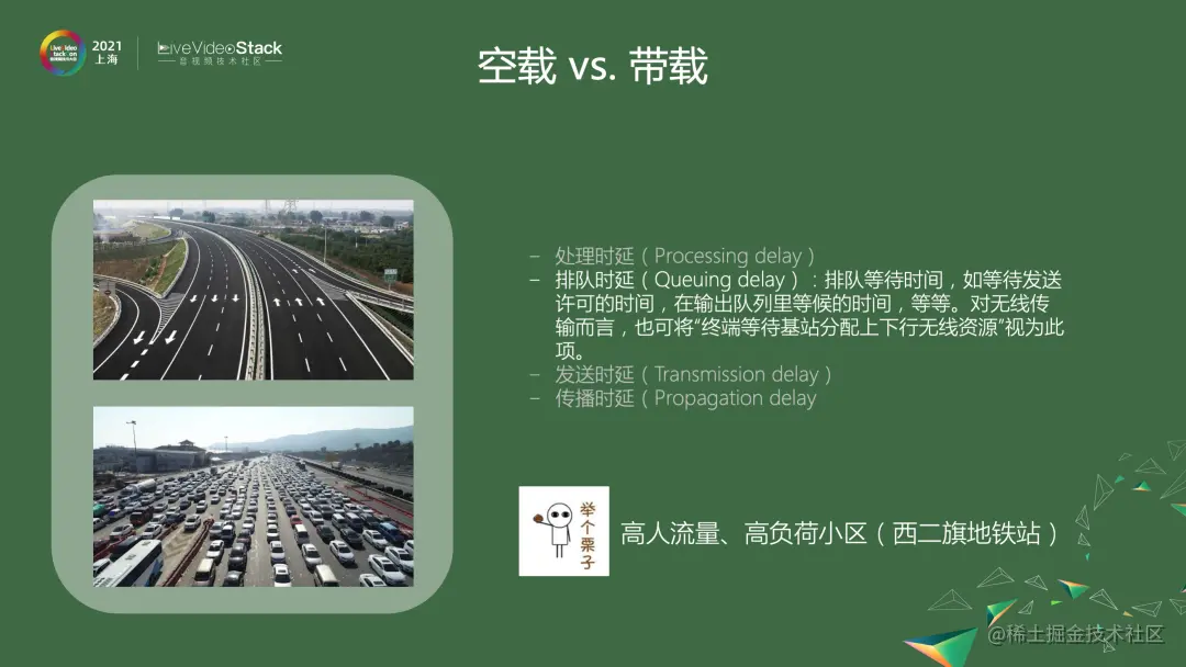 最后一个误解,我们往往会忽略带宽对延时的影响。比如我们处理一些小包的时候,延时还是很低的,一旦加载业务,延时就变成15毫秒甚至40毫秒,100毫秒。
