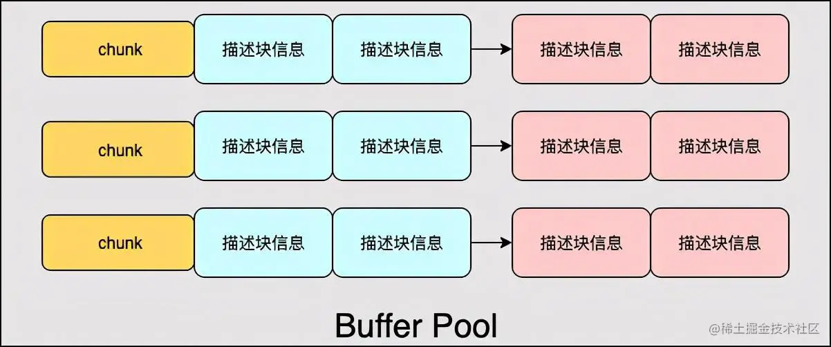 可以看上图脑补一下Buffer Pool 以及 Chunk长什么样。