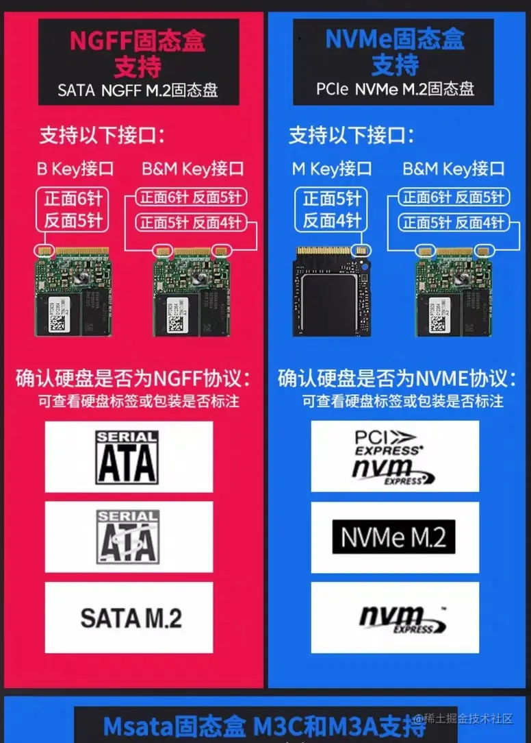 简单总结一下:Bkey 是 NGFF(m.2)的代表,M key是 NVMe的代表,B&Mkey的有可能是NGFF也可能是NVMe