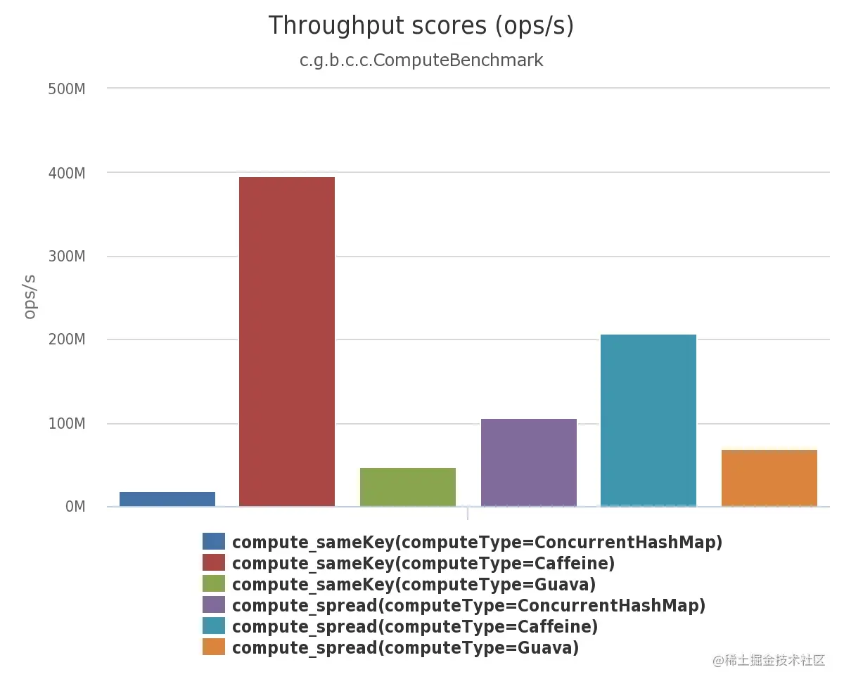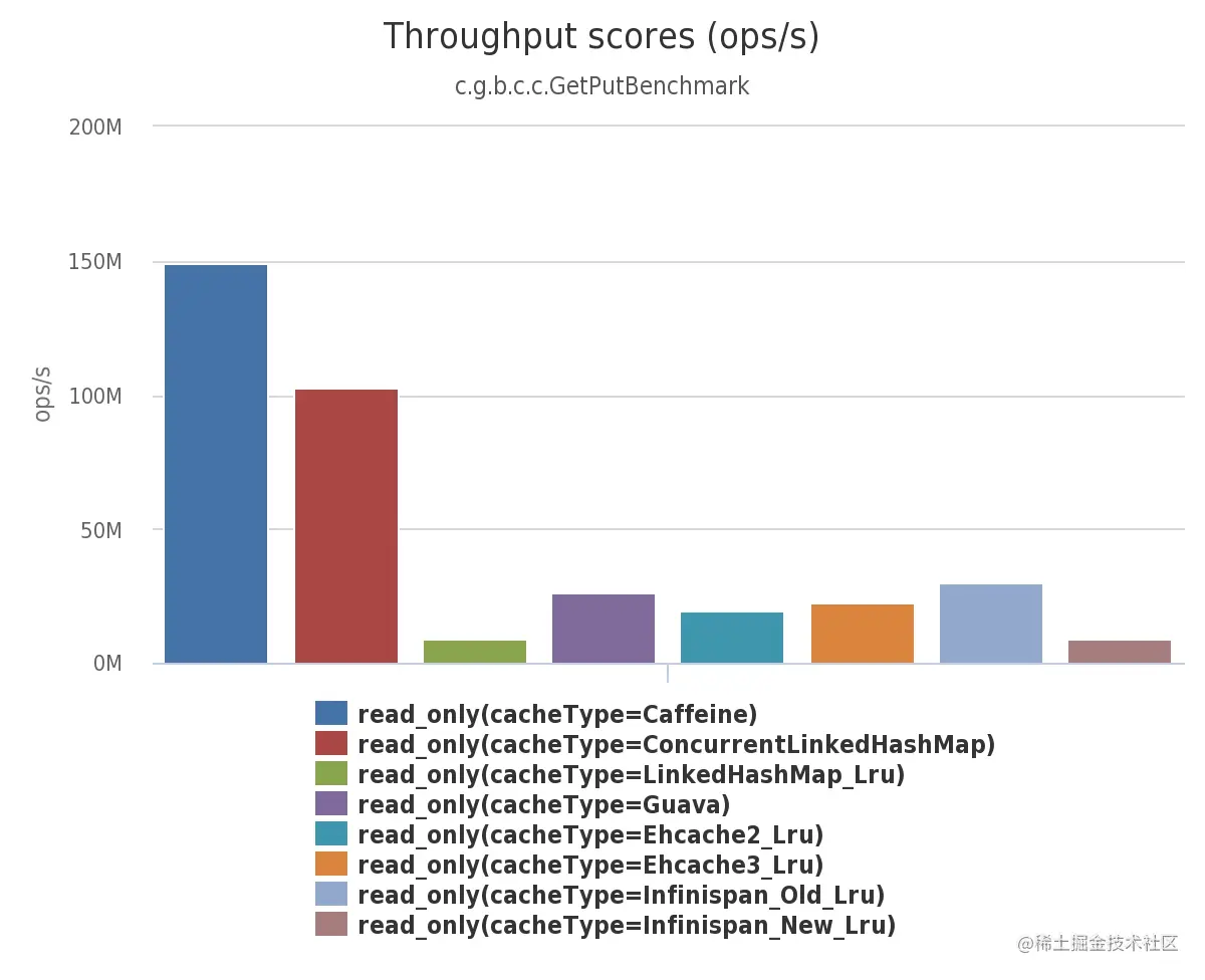 下图是Caffeine的一张性能测试图。可以看到它的性能,甩了GuavaCache老远。这是为什么呢?