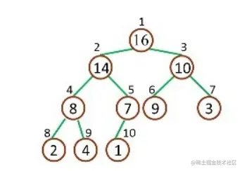 节点的值: 16 14 10 8 7 9 3 2 4 1
