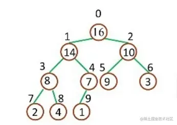 // 由于数组下标为0,则若i为某个非叶子节点,左子节点为i*2+1;右子节点为i*2+2
