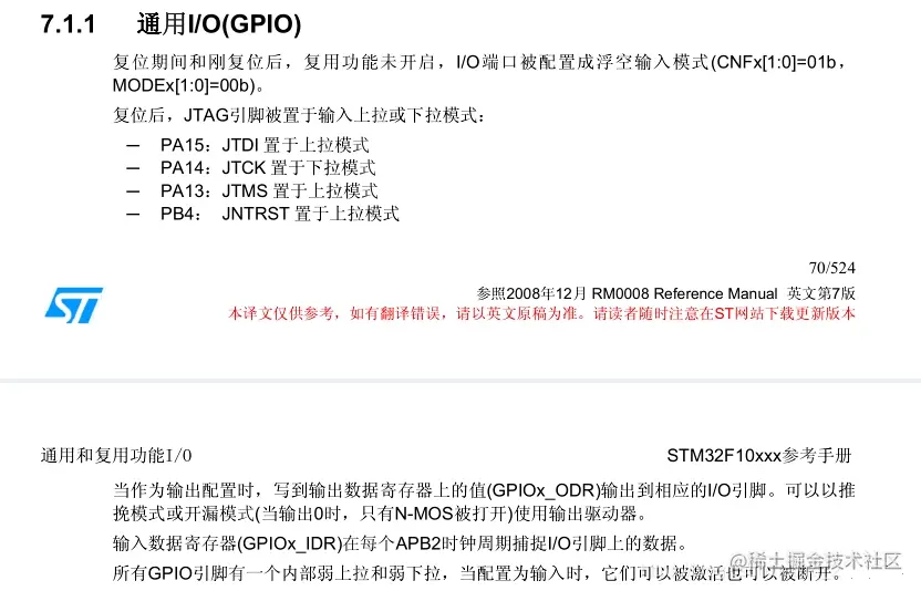 STM32单片机复位后,JTAG口默认是被占用的。如果想将JTAG占用的几个IO口设置为普通IO口,就需要进行端口重映射。