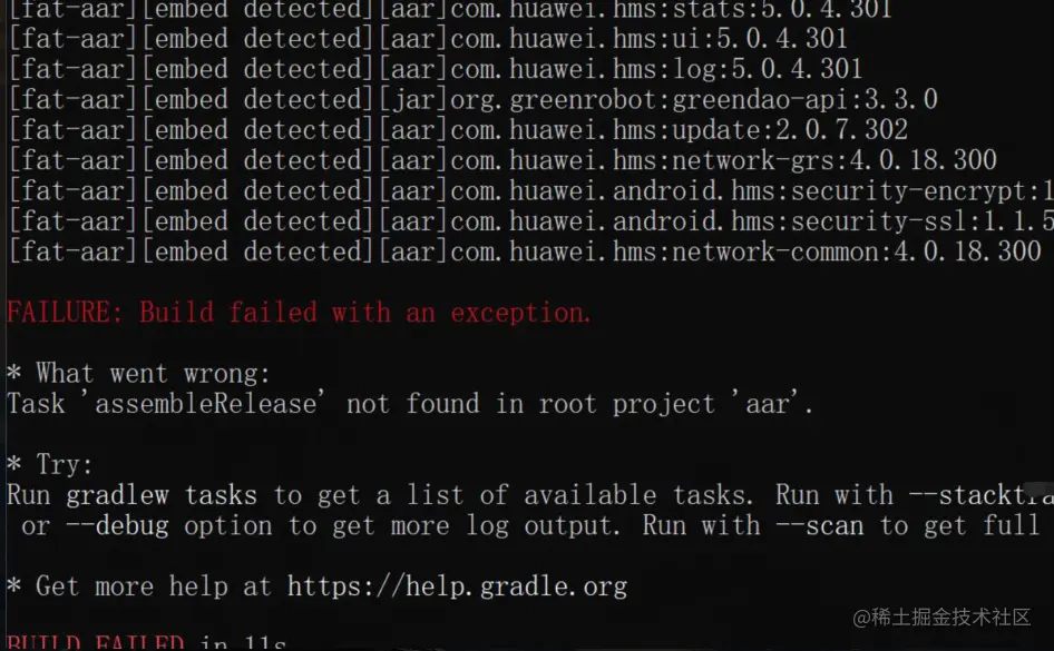 Task ‘ assembleRelease ’ not found in root project ‘ aar ’.