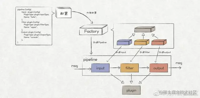 最后定义 pipeline 的工厂方法,调用 plugin.Factory 抽象工厂完成 pipelien 对象的实例化: