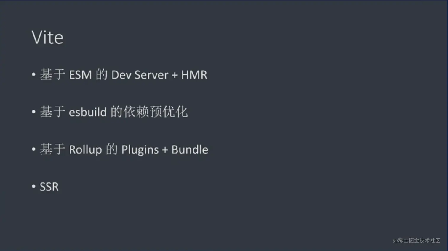Vite在去年就已经出来了,但我真正的去了解它却是在最近Vue Conf上李奎关于Vite: 下一代web工具的分享。其中他提到的几点吸引到了我。分享的开始,他简要说明了本次分享的关键点: