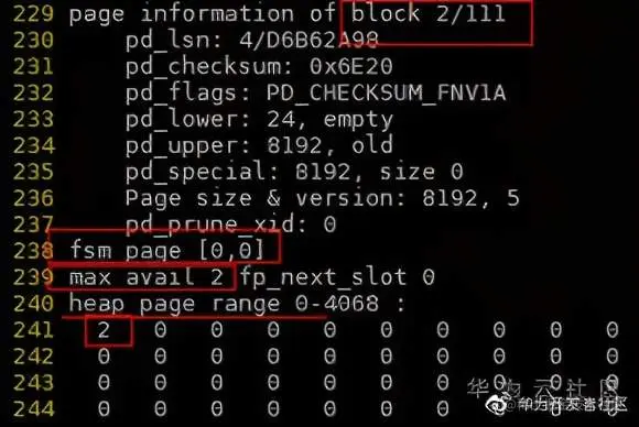 FSM 查找和维护的逻辑并不复杂,但是整个过程对外是不可见的。因此 GaussDB(DWS)提供了 pagehack 工具来读取 FSM 文件,帮助查看当前数据页的空闲空间情况。