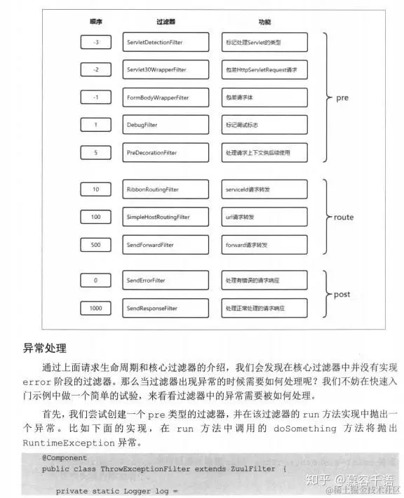 快速入门、构建网关、请求路由、请求过滤、路由详解、传统路由配置、服务路由配置、服务路由的默认规则、自定义路由映射规则、路径匹配、路由前缀、本地跳转、Cookie与头信息、Hystrix 和 Ribbon 支持、过滤器详解、过滤器、请求生命周期、核心过滤器、异常处理、禁用过滤器、动态加载、动态路由、动态过滤器。