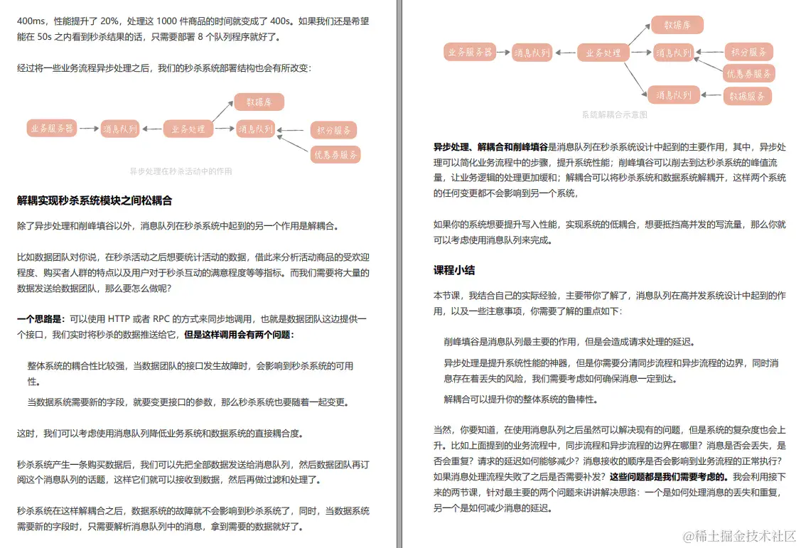 同一时间、海量用户的高频访问对任何平台都是难题,但可喜的是,虽然业务场景不同,设计和优化的思想却是万变不离宗。如果你掌握了高并发系统设计的核心技术点(缓存、池化、异步化、负载均衡、队列、降级熔断等),深化成自 己的知识体系,解决这些业务问题将不在话下,应对自如。