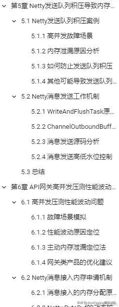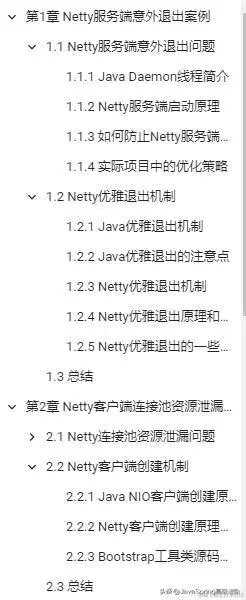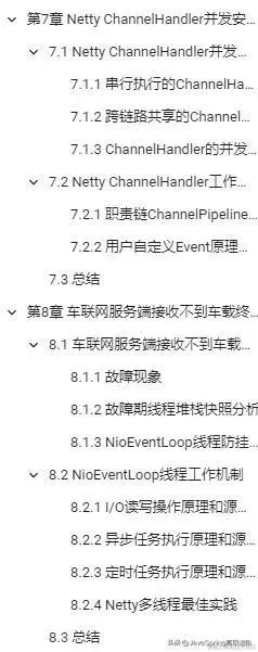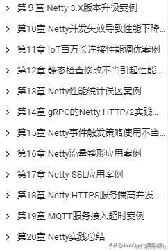 然而很多Netty相关的知识点与工作中的技巧,一篇文章是很难说完整的。这次小编针对Netty技术知识难点特地分享一份PDF文档 《Netty源码剖析及实战文档》 ,里面内容涉及Netty的启动和停止、Netty 的内存、Netty 的并发多线程、Netty 的性能、Netty 的可靠性、Netty 的安全等等